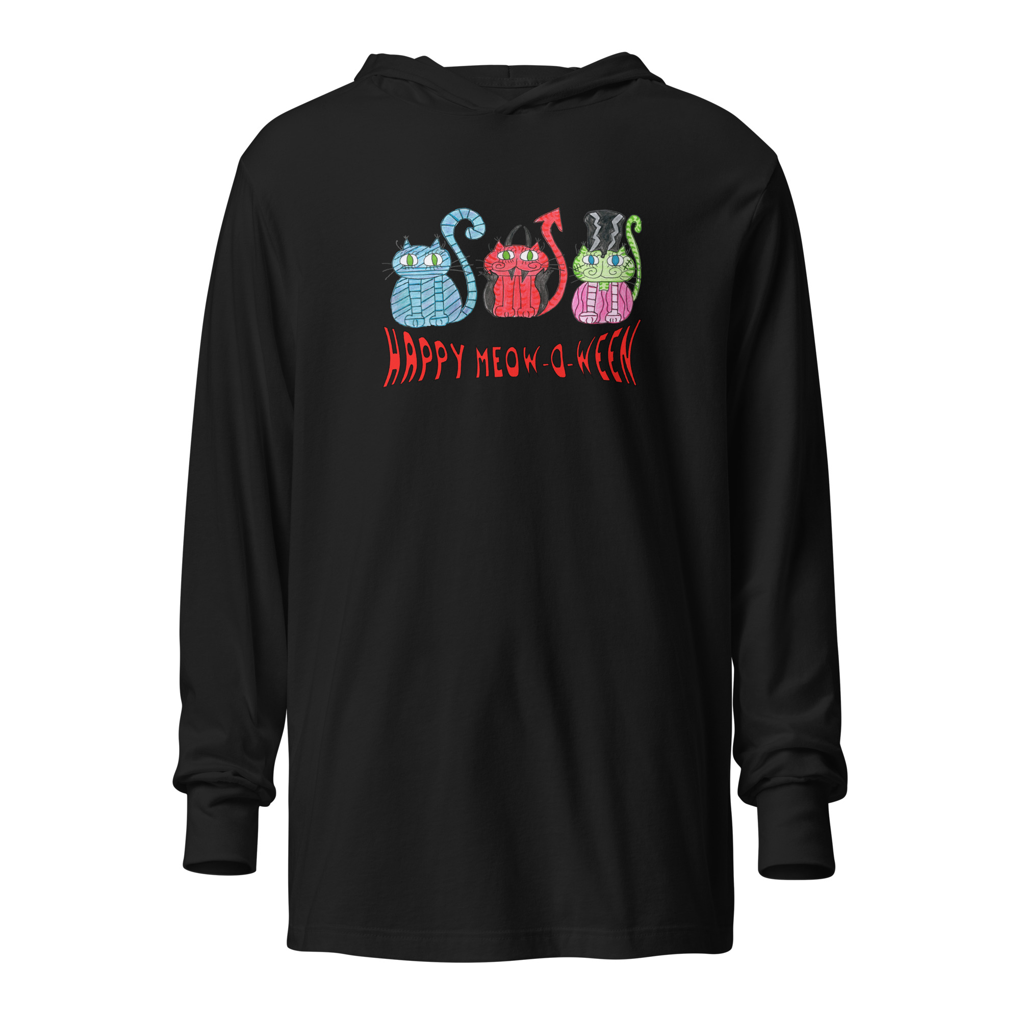 Get ready for a spooky-fun fashion experience with our “Happy Meow-o-ween” shirt featuring three fabulous feline friends dressed to impress. We’ve got a mummy cat, a devilish kitty, and a purr-fectly adorable Bride of Frankenstein, all here to make your Halloween the cat’s pajamas!